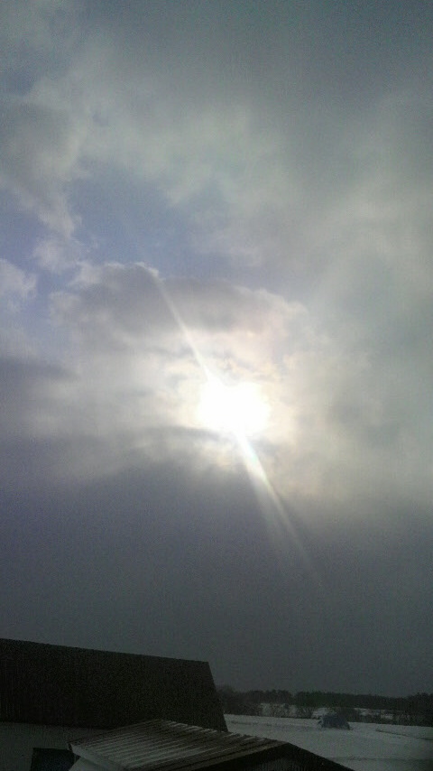 新年、朝から… 生憎の吹雪模様 しかしながら、午後になって… 雲の間から顔を出しました 文字通り、初日の出です いいことありますように ついつい、手を合わせちゃいました